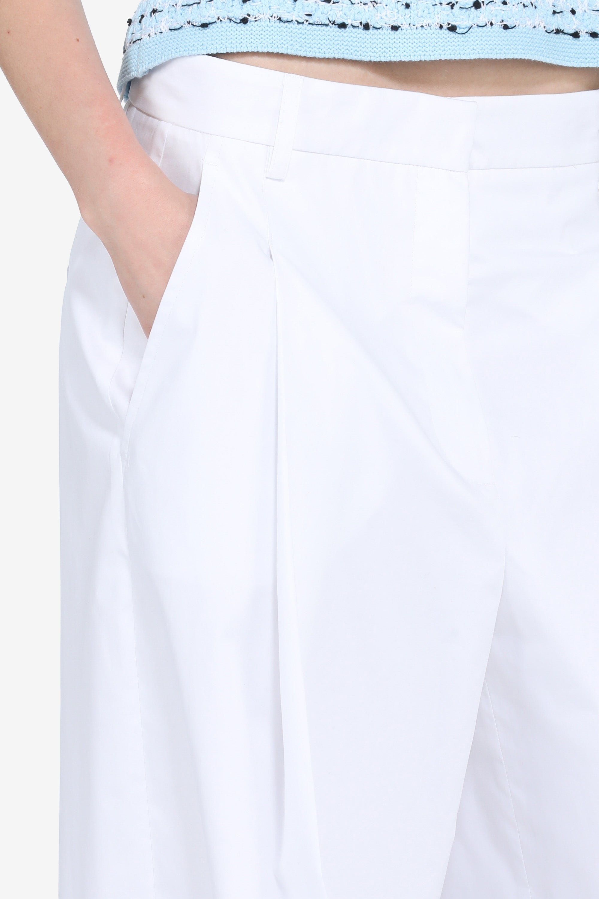 Wide-leg palazzo pants. White. Waist with belt loops. Long length, straight to the floor.