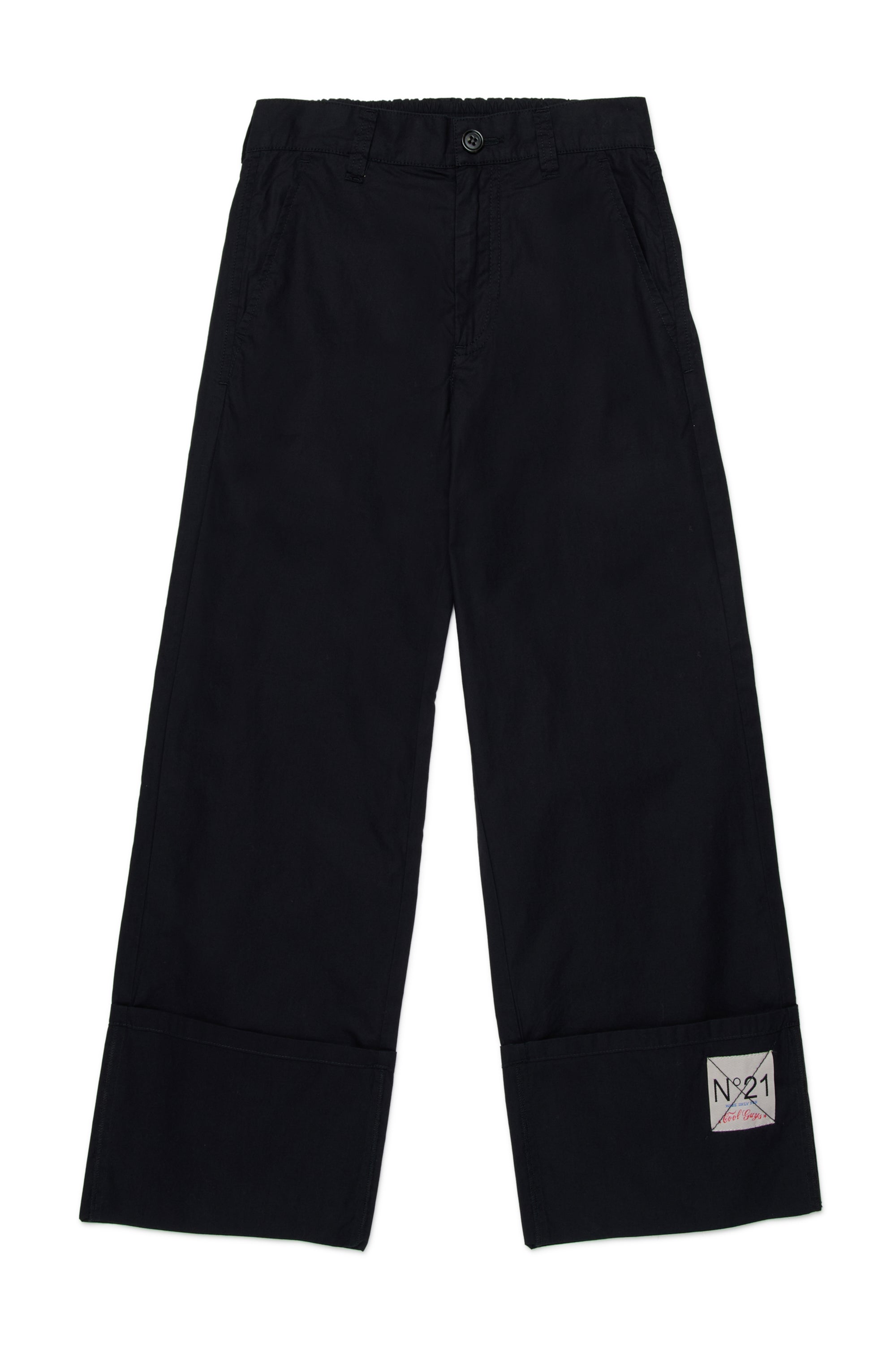 Long trousers with front pleats. Black. Front button and zip fastening with belt loops. Straight fit and simple construction.