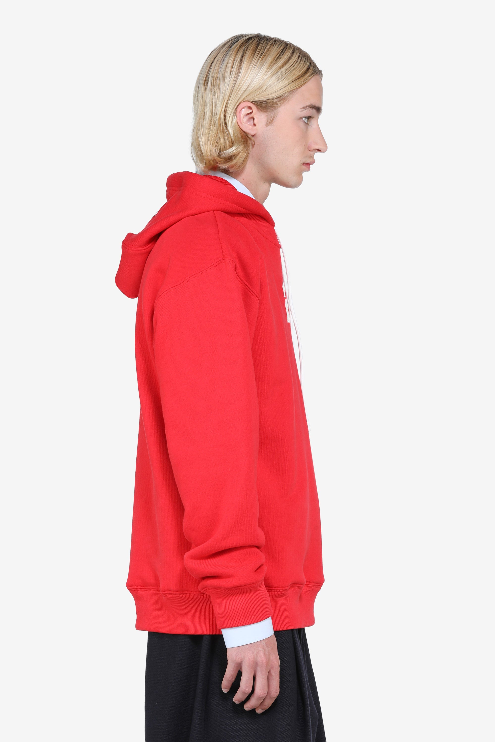 Felpa colore rosso, con cappuccio regolabile e laccetti bianchi. Taglio regolare e comodo, maniche lunghe e orlo rifinito a costine. Sul fronte è presente un dettaglio con il numero bianco 21.