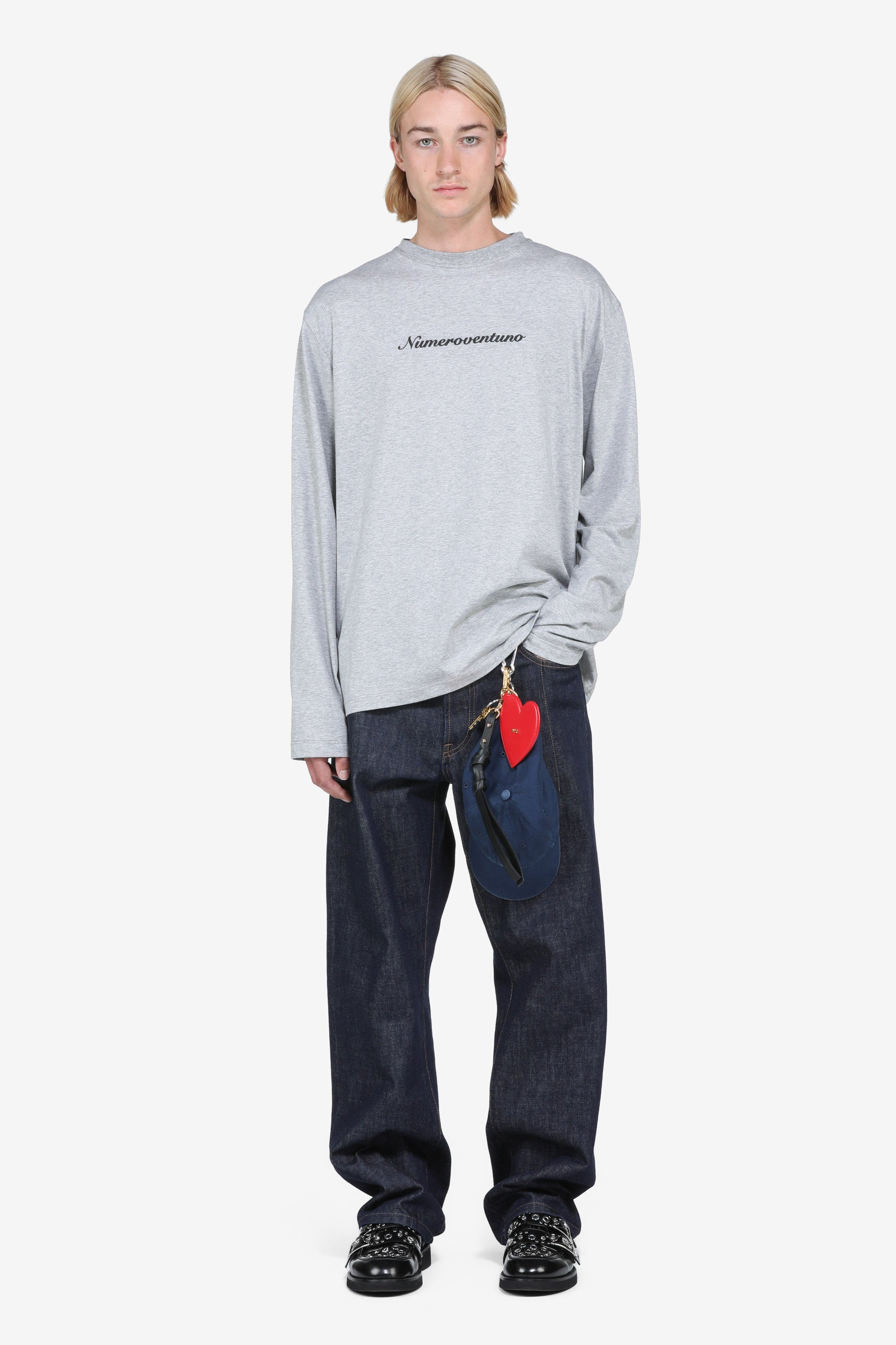 T-shirt a maniche lunghe in cotone grigio chiaro. Modello con vestibilità comoda, girocollo con scritta "Numeroventuno" sul petto.