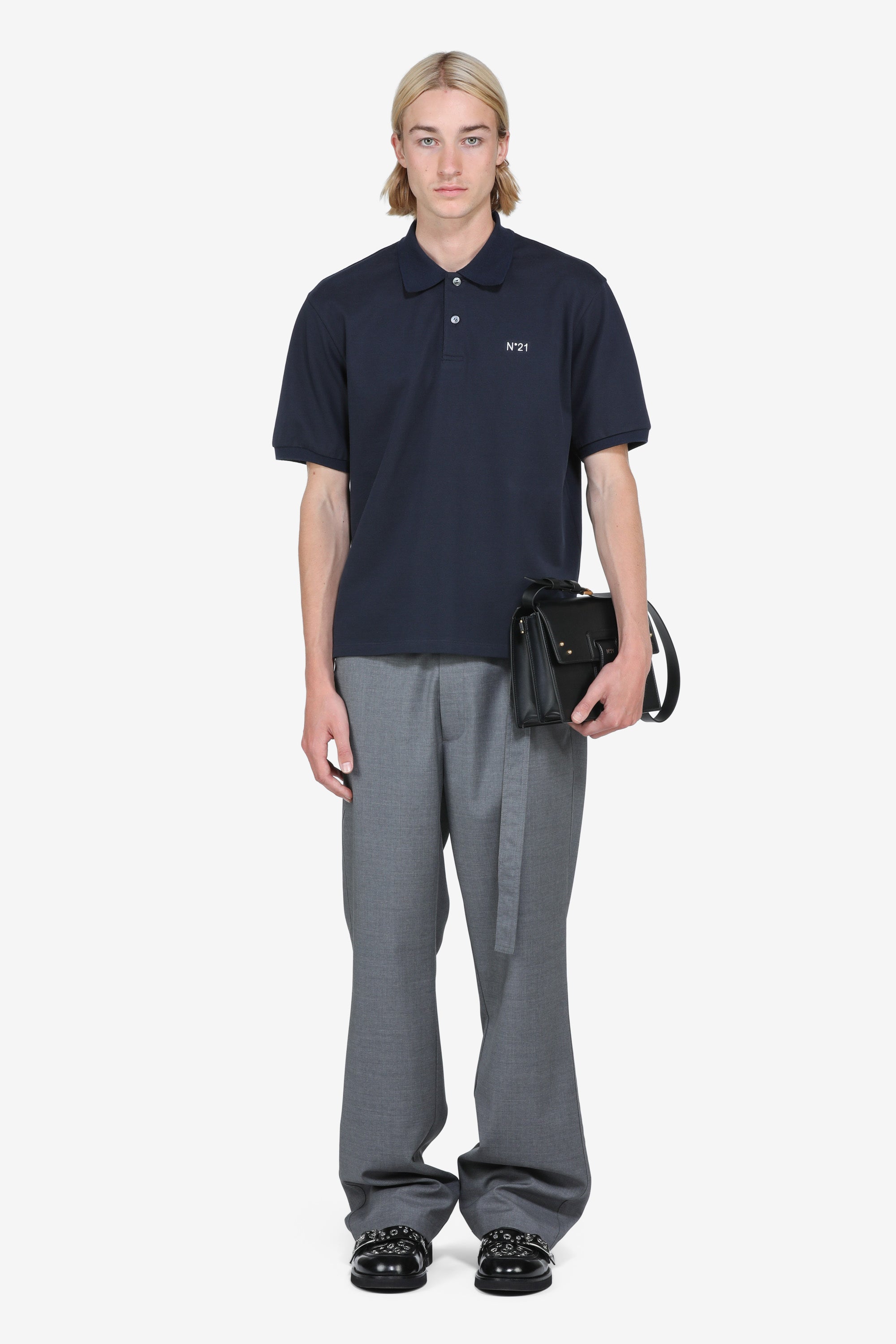 Polo a maniche corte in cotone, colore blu navy. Taglio regolare. Collo polo con chiusura a due bottoni. Presenta un logo ricamato sul petto sinistro.